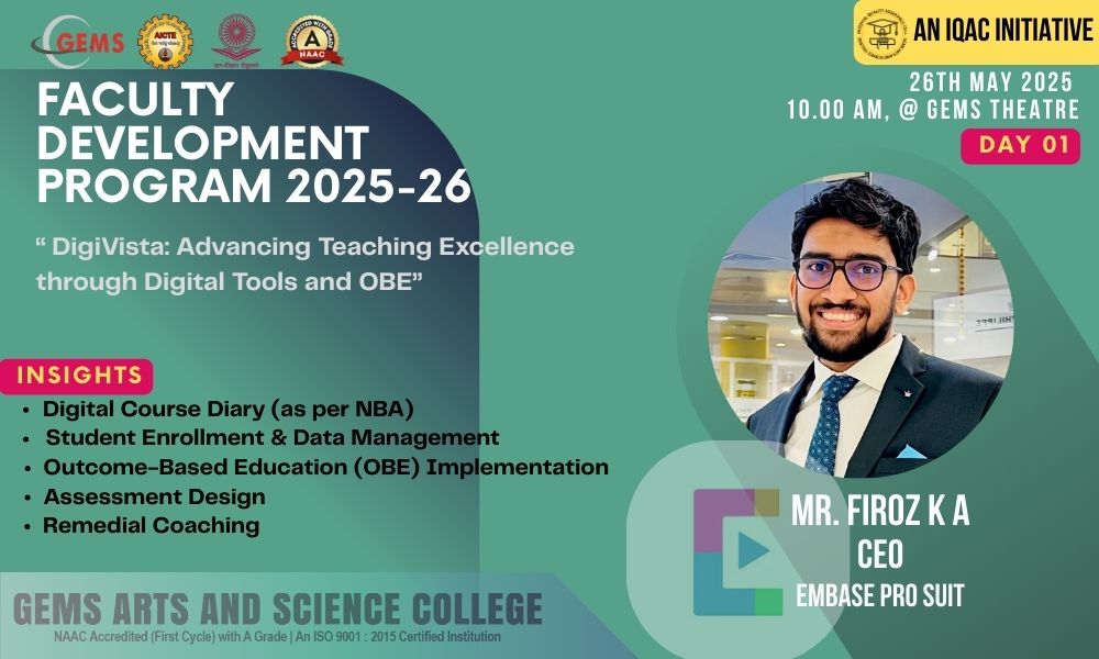 Gems College Quality Matters: Strengthening Institutional Performance Start writing here...... Dec 3, 2025 FACULTY DEVELOPMENT PROGRAMME FRIDAY SEMINAR