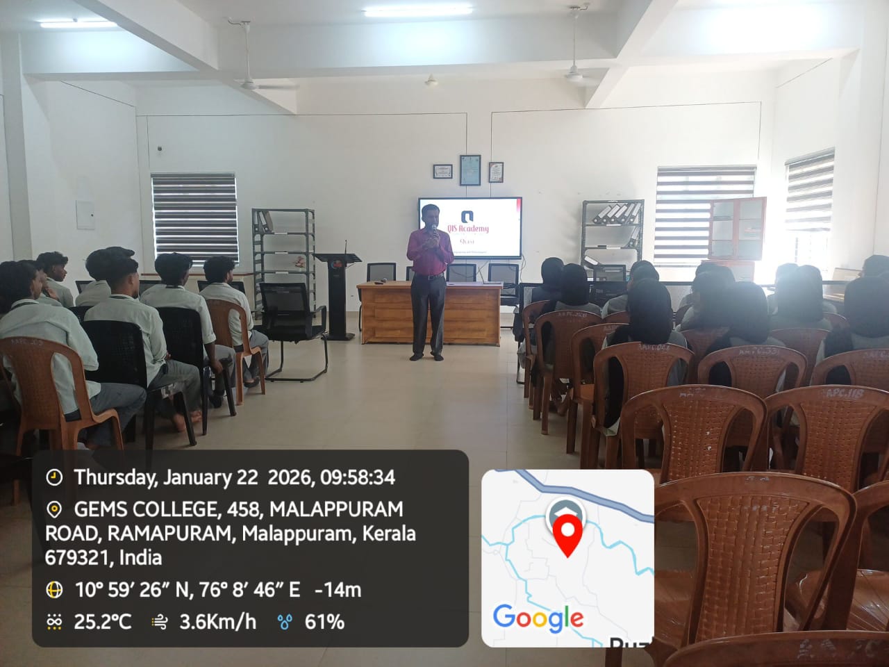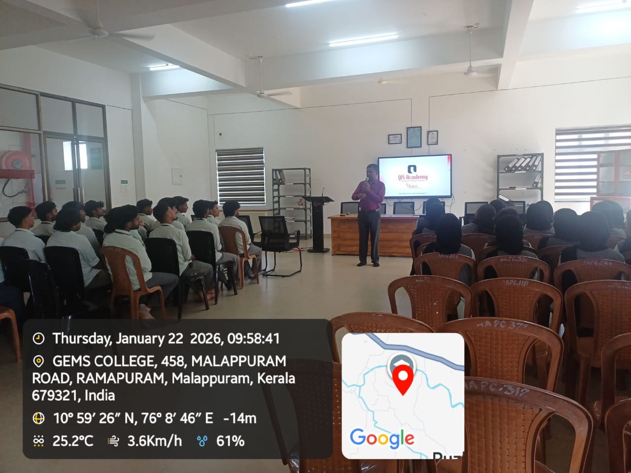 Mr. Neju A. N, Senior Manager, Quest Innovative Solution Pvt Ltd Cochin, served as the resource person for the session. He delivered an engaging presentation, using his professional experience to advise students on various crucial aspects of career success. He provided a clear view of current industry trends and stressed the need to develop both technical and soft skills to stay competitive in the job market.