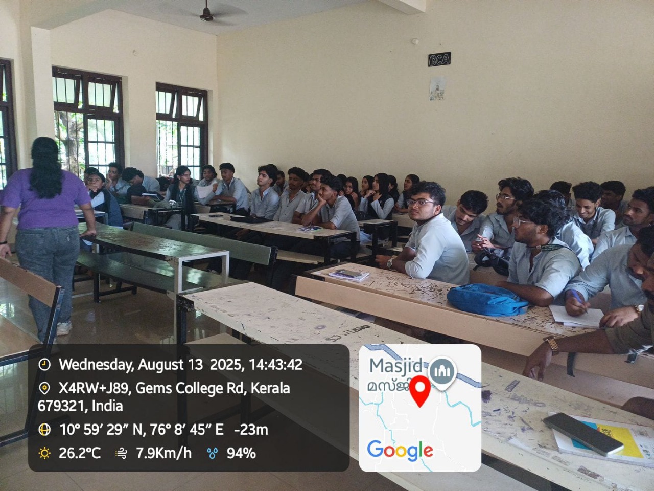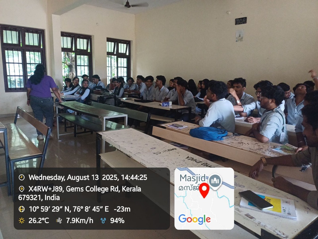 The Department of Computer Applications, in association with Infocampus Calicut, organized an informative session on the topic “Future in IT and Career Opportunities” on 13th August 2025 from 2:30 PM to 3:30 PM. The session was conducted at the BCA classroom.