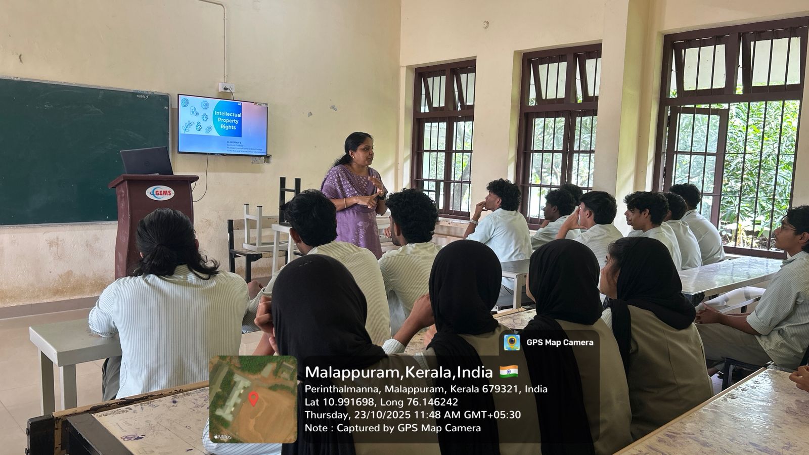 The session aimed to create awareness among students about the importance of Intellectual Property Rights (IPR) in the modern digital landscape. The resource person for the session was Dr. Deepthi V. C., Assistant Professor, PG Department of Biotechnology, who elaborated on various aspects of IPR, including copyrights, patents, trademarks, and digital content protection. Special emphasis was placed on the challenges and opportunities that arise in safeguarding digital creations such as software, multimedia, and online publications.
