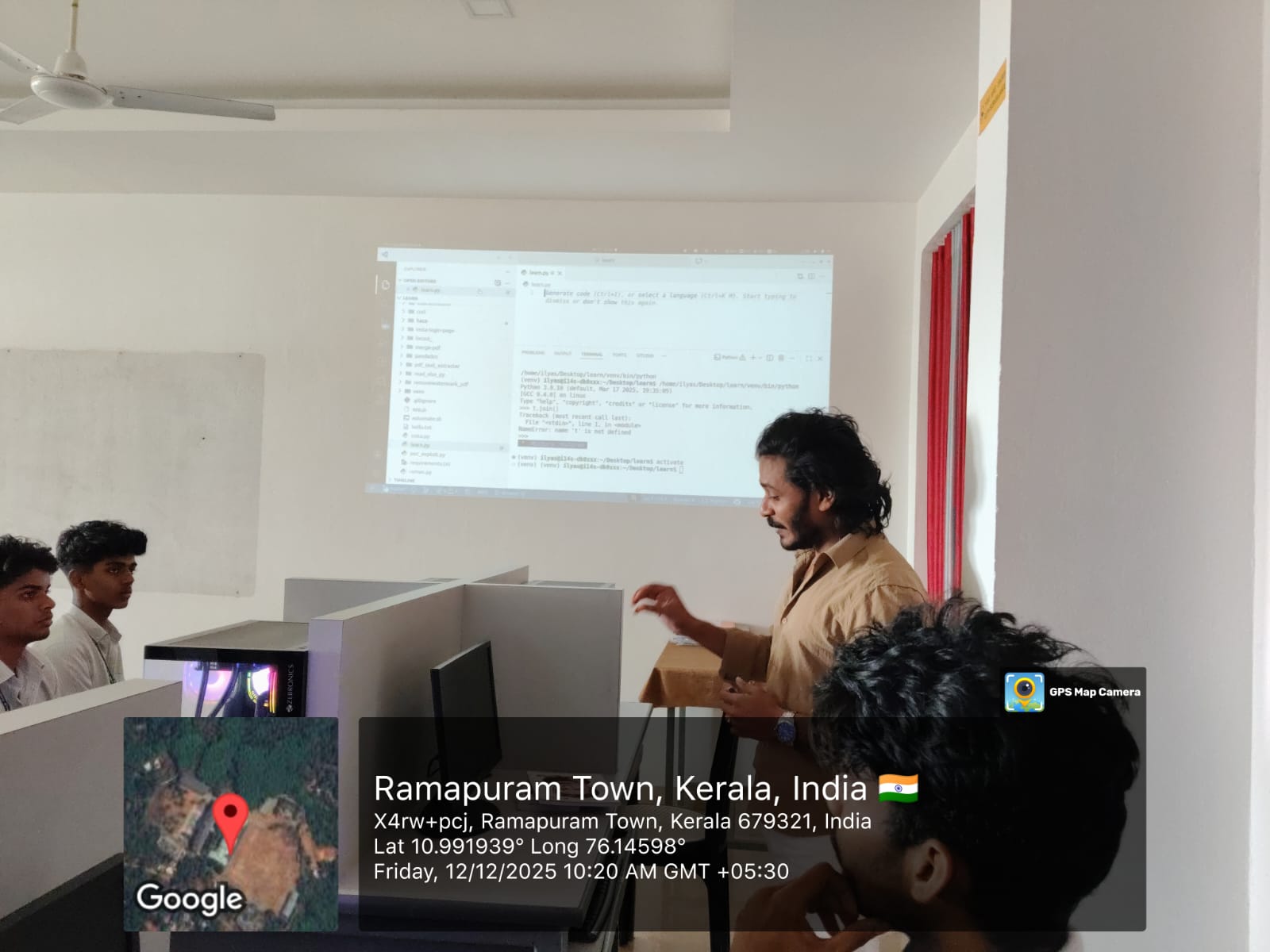 The PyTech360: Future-Ready Python Boot Camp was conducted for B.Sc. Artificial Intelligence students on 12th December 2025, from 9:30am to 12:30pm, at Geoinformatics lab, with the objective of providing hands-on training in Python programming and enhancing practical coding skills. The program was handled by Mr. Aswin T, Software Engineer at PAAPI Ltd, and Mr. Ilyas Babu, Software Engineer at MDrift Technologies. The sessions focused on Python fundamentals, real-time examples, and interactive coding exercises, enabling students to gain practical exposure to industry-relevant programming practices.