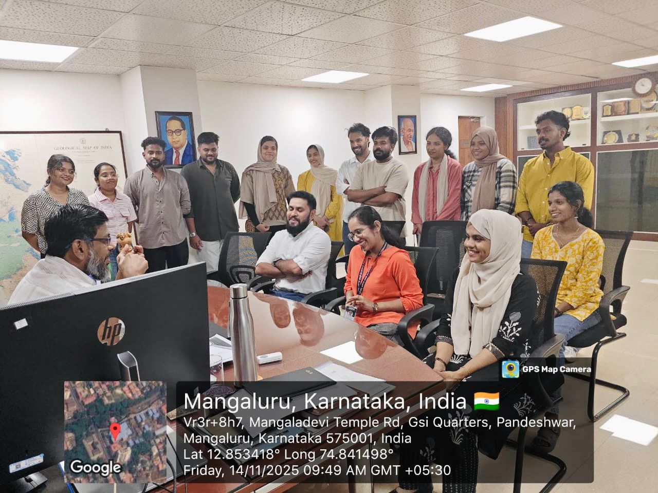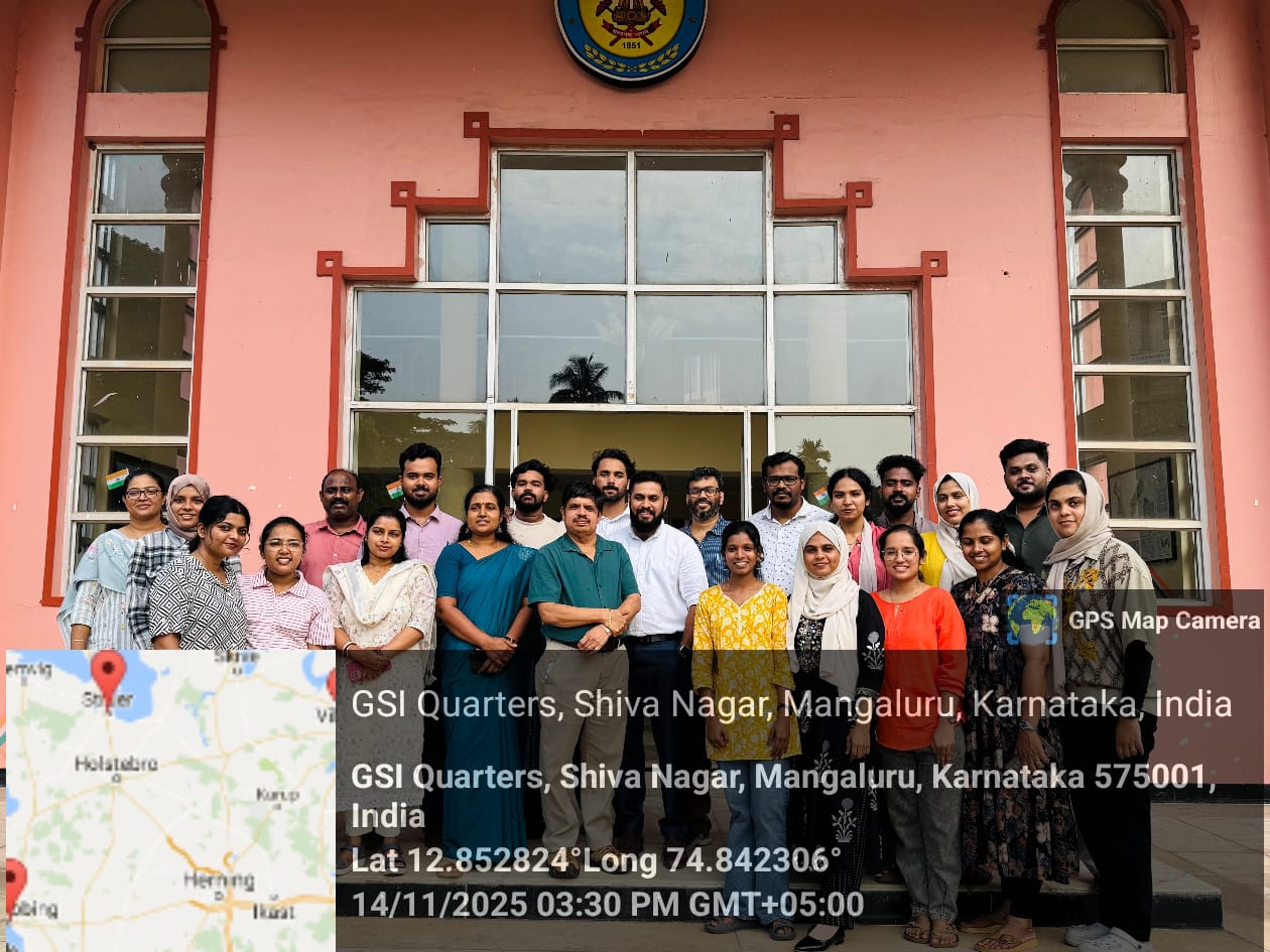 On 14 November 2025, the Post Graduate Geology students of GEMS Arts and Science College (Autonomous), Malappuram, Kerala, visited the Marine & Coastal Survey Division (M&CSD), Geological Survey of India, Mangalore, for a full-day academic exposure programme. The session began at 10:00 AM with a warm Welcome Address by Shri Manoj Kumar K. (TC Division, OpWC-I, M&CSD), followed by an Introductory Speech by Smt Nisha N. V., Director, PSS, M&CSD, after which the visiting students and faculty introduced themselves. A technical lecture on Marine Offshore Activities of GSI was delivered by Shri Manoj R. V., Senior Geologist, providing insights into ongoing marine research initiatives. After a short tea break, Sarmistha Chowdhury, Geologist, led a session on Future Career Paths After M.Sc. Geology, offering guidance on opportunities in academia, industry, and governmental sectors. This was followed by a briefing on St. Mary’s Island by Shri Manoj R. V., and an engaging video playback of various marine activities conducted by M&CSD, along with a lively quiz that encouraged student participation. From 12:30 PM onwards, students were taken for a lab visit to the Sedimentology & PSA Division, led by Smt Nisha N. V., Shri Jasmine V. J., and JTA Geology staff, after which they proceeded for lunch. The post-lunch session included hands-on exposure to the Micropalaeontology & SEM-EDS Laboratory, guided by Shri Manoj Kumar K., Smt Reshma A., Shri Aijandas M., and Smt Sharika Mathew, followed by a visit to the Museum & Core Repository and the Thin Section Preparation Lab under the guidance of Dr. C. V. Gopalan and Shri Jasmine V. J. Students then visited the Chemical Division led by Shri Sagar Jindal and Shri Sahil Singh (Chemist), the Geodata Division led by Angresheme R. Hikare (Senior Geologist), and the Geophysical Division under Shri Sunil Kumar (Geophysicist), gaining practical understanding of analytical techniques, data processes, and geophysical applications. The programme concluded at 4:30 PM with Prize Distribution, Feedback, and a Vote of Thanks delivered by Dr. C. V. Gopalan, Director, along with Shri Soubhik Bhattacharya, marking a highly informative and enriching academic experience for all participants.