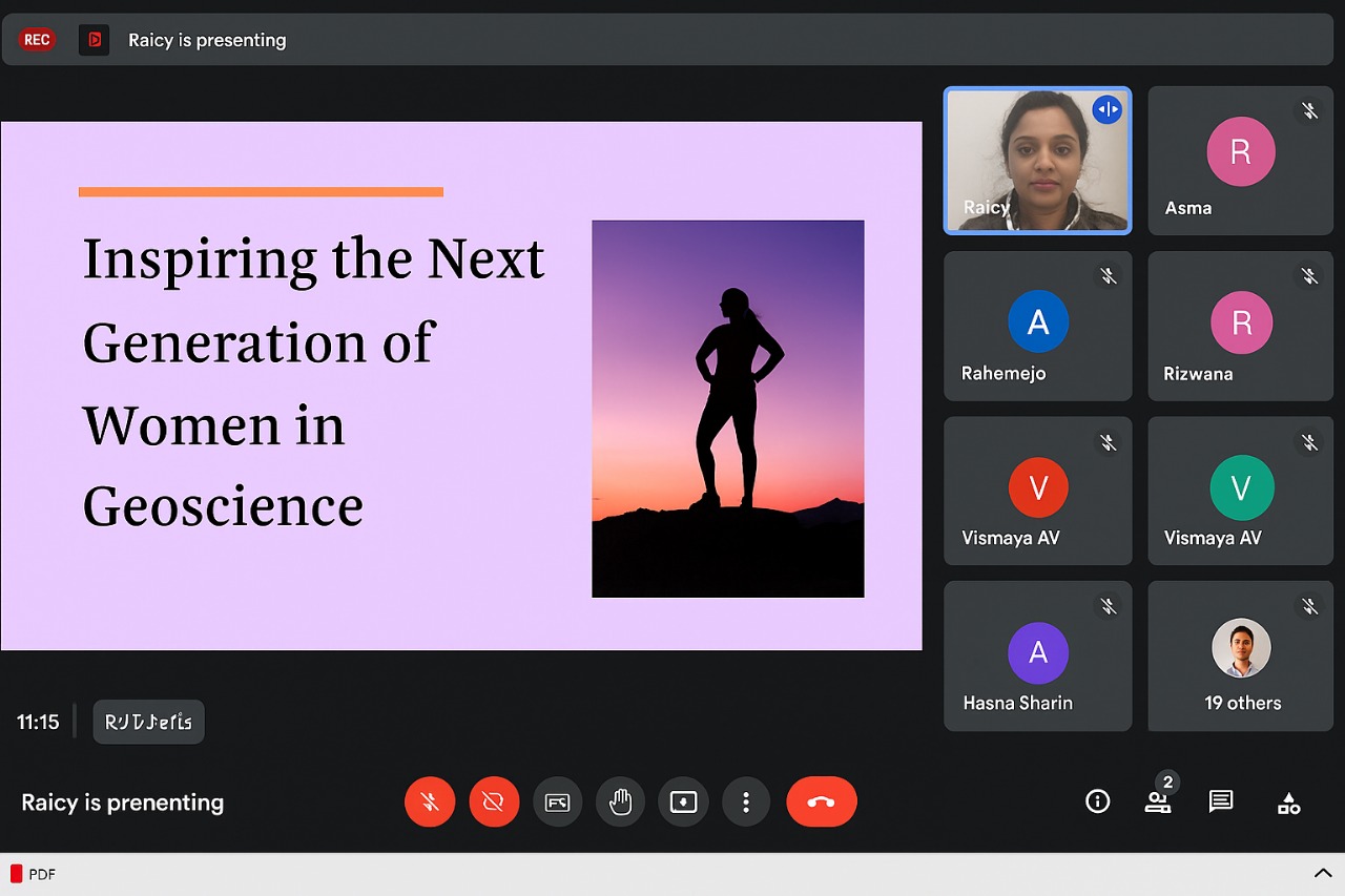 The session also shed light on the historical and contemporary contributions of women geoscientists globally and in India, encouraging young female students to pursue careers in geology, environmental science, and related fields. Dr. Raicy discussed various government initiatives, research opportunities, and scholarship programs that support women in STEM disciplines.