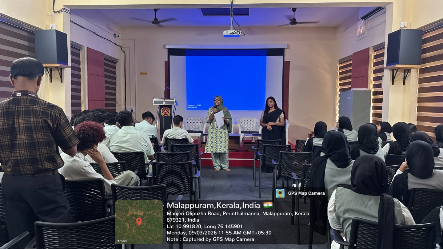 The session aimed to create awareness among students about the importance of gender equality and the need to promote inclusive practices in workplaces. The resource person for the programme was Nimmi Ayyappan Parambil, Assistant Professor, and Department of Sociology. She delivered an informative talk highlighting the concepts of gender equality, gender bias, and discrimination that often occur in professional environments.