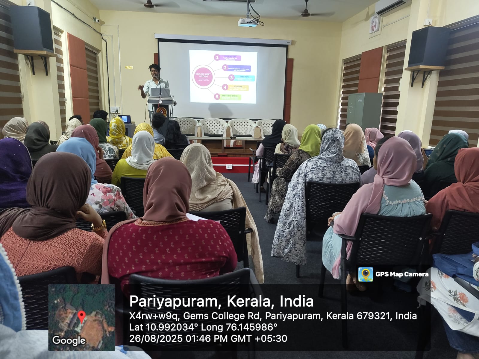 The session was coordinated by Ms. Thasni M., Assistant Professor, and handled by BBA students—Mr. Amal Abdul Jaleel, Mr. Muhammed Shaaz, Ms. Fathima Hiba K.P, and Ms. Niya C—who actively engaged participants through practical demonstrations and discussions. A felicitation ceremony was also held, where Dr. Abdussamad, Vice Principal, and Mr. Abdul Latheef Aslem, Assistant Professor, Department of Commerce, addressed the gathering and appreciated the efforts of the organizers and participants.
