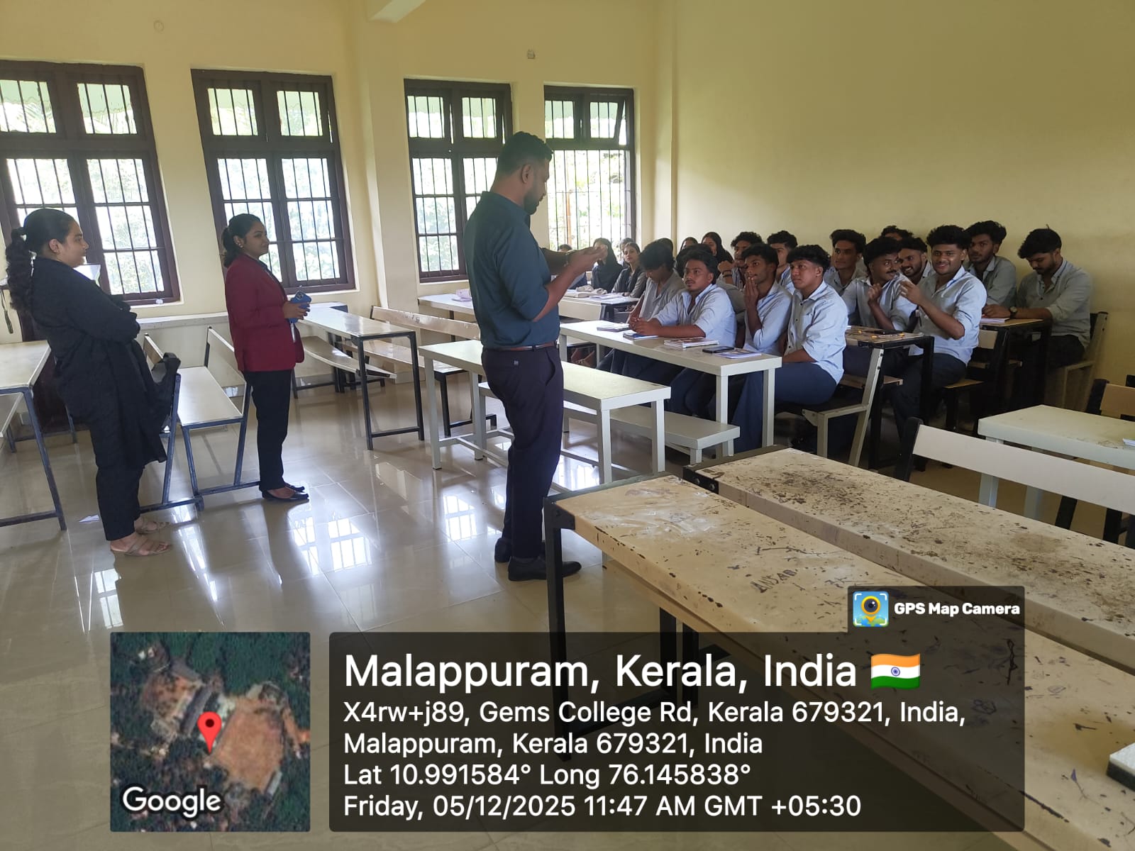 Department of Management Studies organised a Session on FUTURE READY – ORIENTATION SESSION – CAREER PROSPECTS, on 05.12.2025, at 11.30AM, at Room No. 205. The Coordinator of the programme was Mr. Sandeepan.K.M – Asst. Professor & HOD, Department of Management Studies. The Resource-Person was : Mr. ASHFAR ALI..E – Managing Director, Westberg International, Kozhikkode. The main objectives of the Session were, Enhanced awareness on Emerging Career Path, Improved readiness for Job Market entry, Greater confidence in Career Decision Making Strengthened Professional Development Skill & Students preparedness for the Job