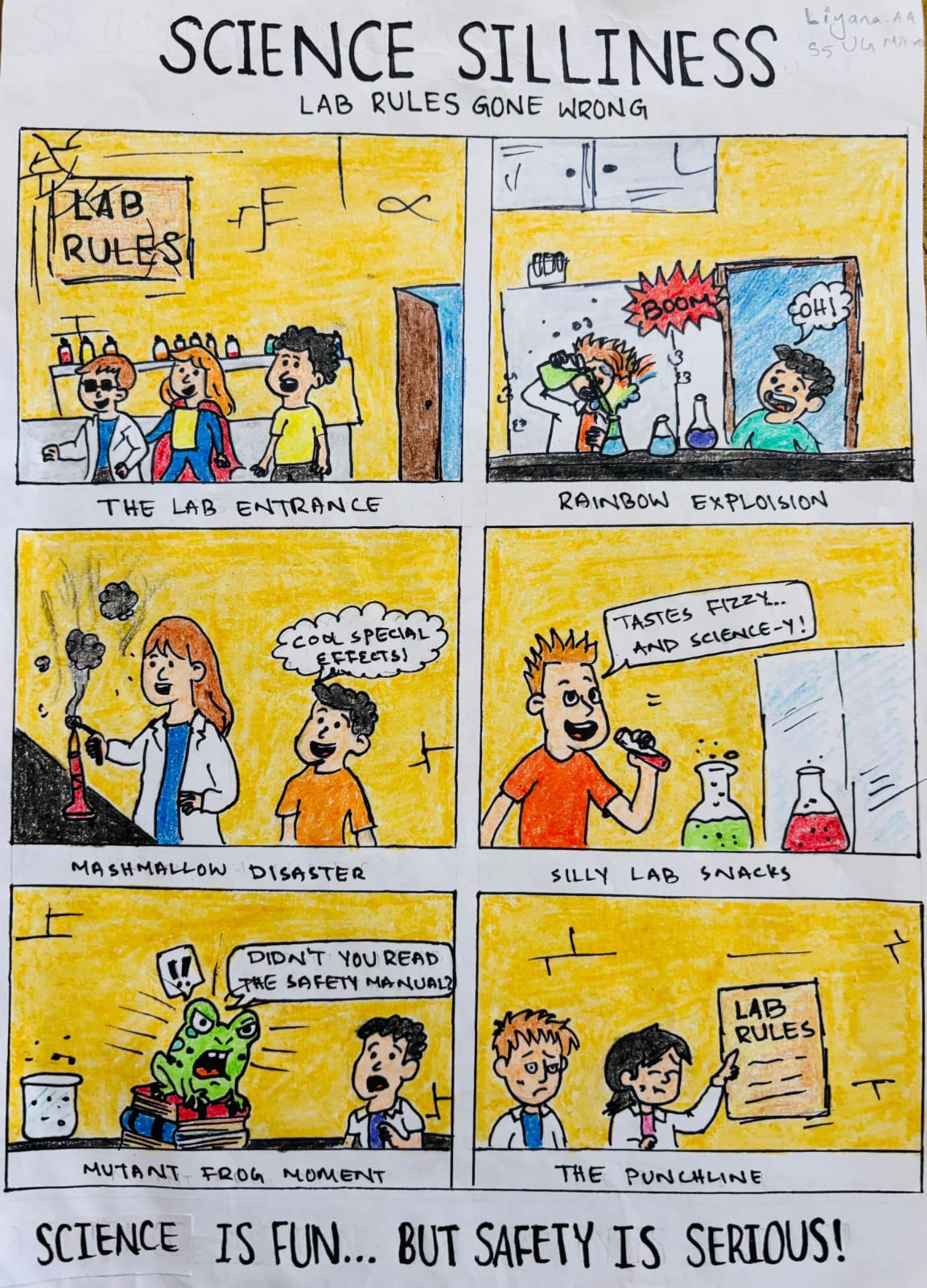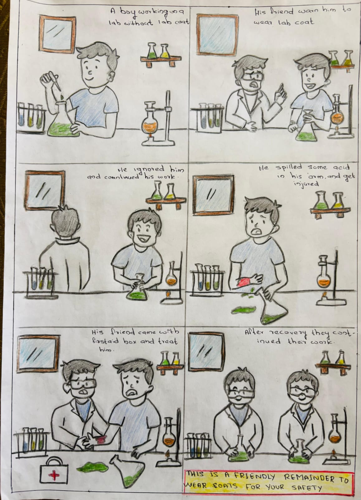In addition to the online initiative, an on-campus Cartoon Making Competition was organized on the theme “Lab Safety Gone Wrong.” The event received enthusiastic participation from students, who creatively highlighted the significance of laboratory safety practices through their artworks.