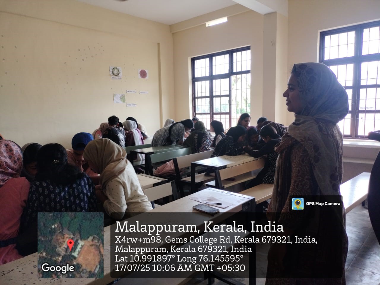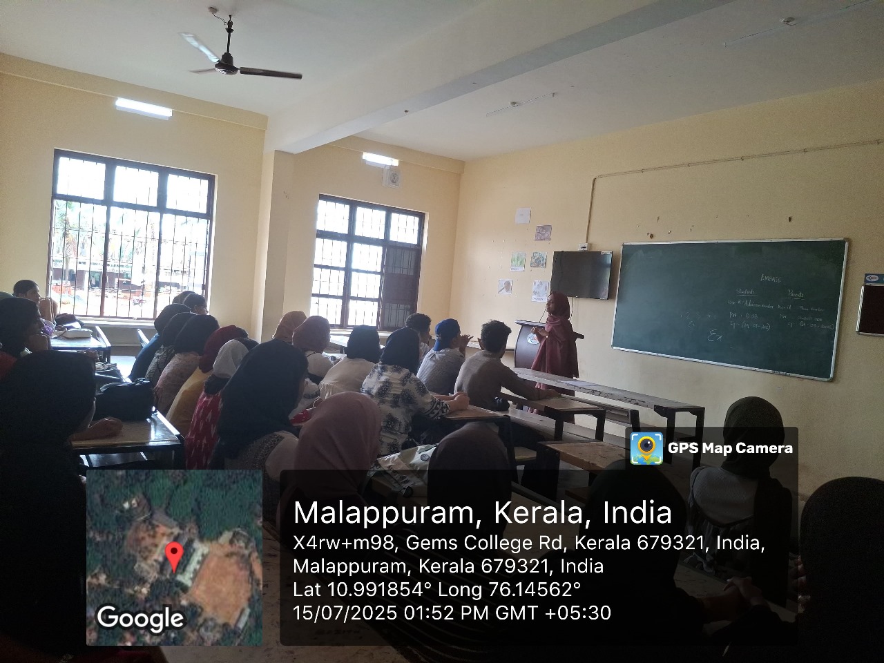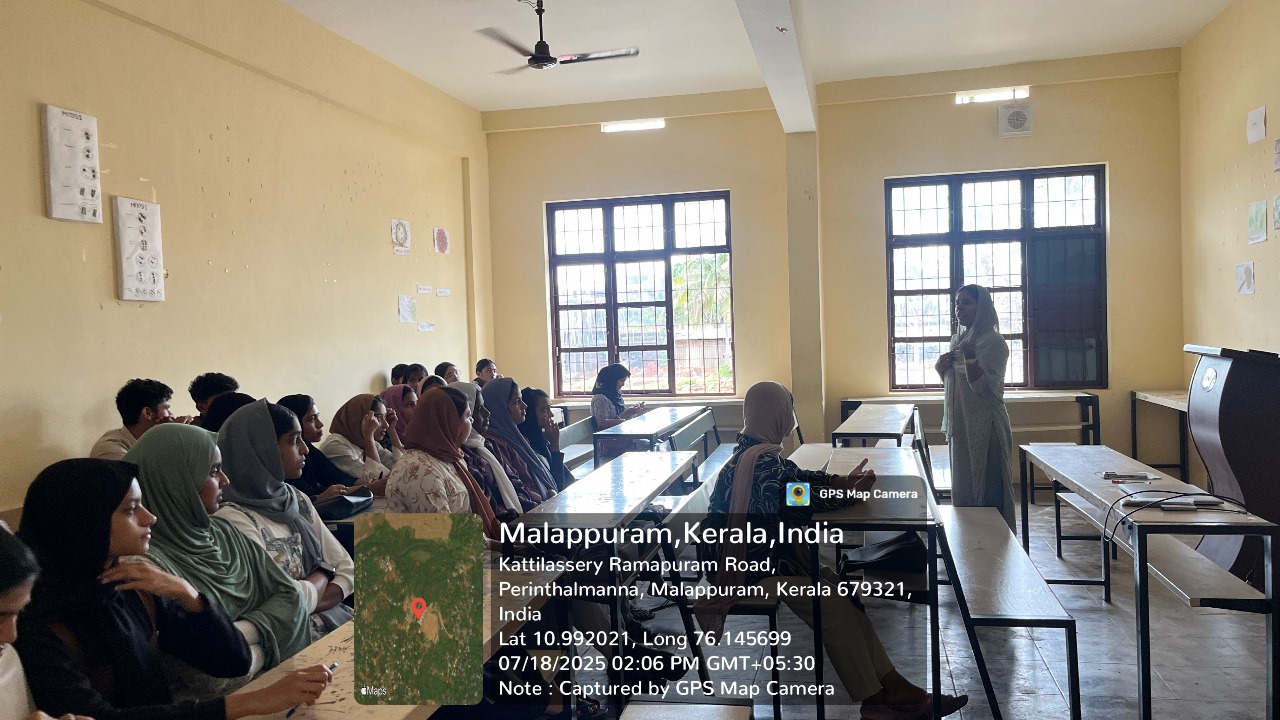 The PG Department of General Microbiology conducted a week-long orientation program from 11th to 18th July 2025 to welcome newly admitted undergraduate students and acquaint them with the department’s academic culture and learning environment. The session series began with an Institutional and Departmental Introduction by Ms. Resna N. K., Head of the Department, who outlined the department’s vision and academic opportunities. An engaging Icebreaking Session by Mr. Vivek P. K. helped students interact and build rapport. A Bridging Session led by Ms. Shana Parveen T. T. guided students in transitioning to the new curriculum. Students also participated in a Library Visit, coordinated by Mr. Vivek P. K., familiarizing them with academic resources. A creative Literary Activity by Ms. Shameema M. encouraged self-expression. The program concluded with an Invited Lecture by Ms. Sulthana Afroza P. P., providing interdisciplinary insights and inspiration for academic excellence.