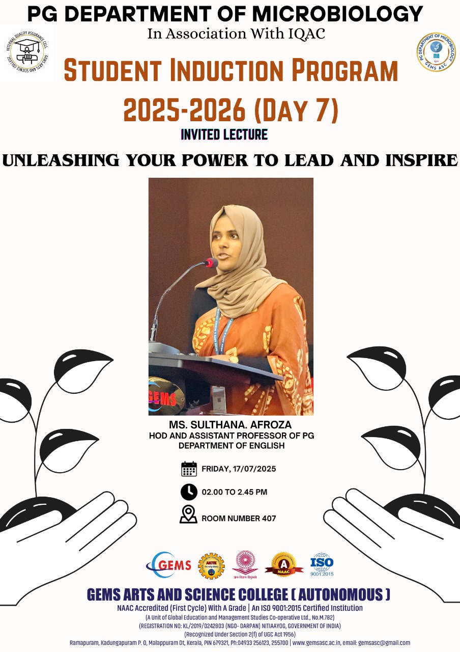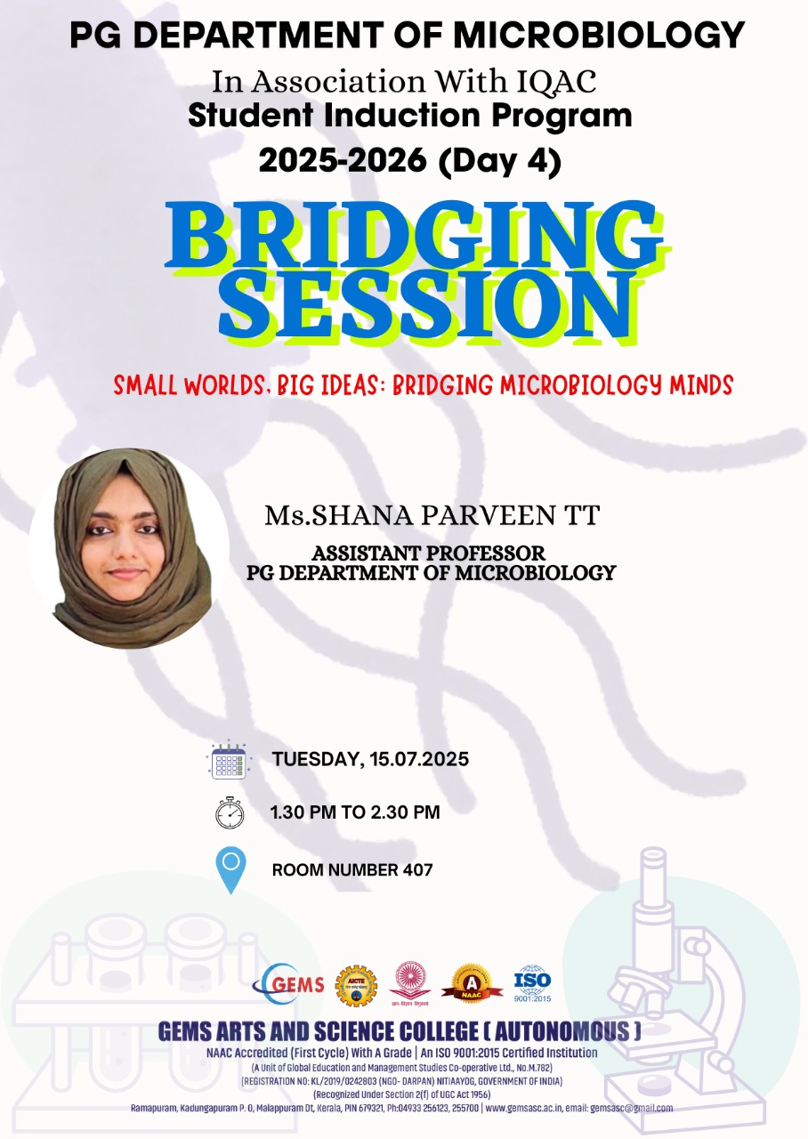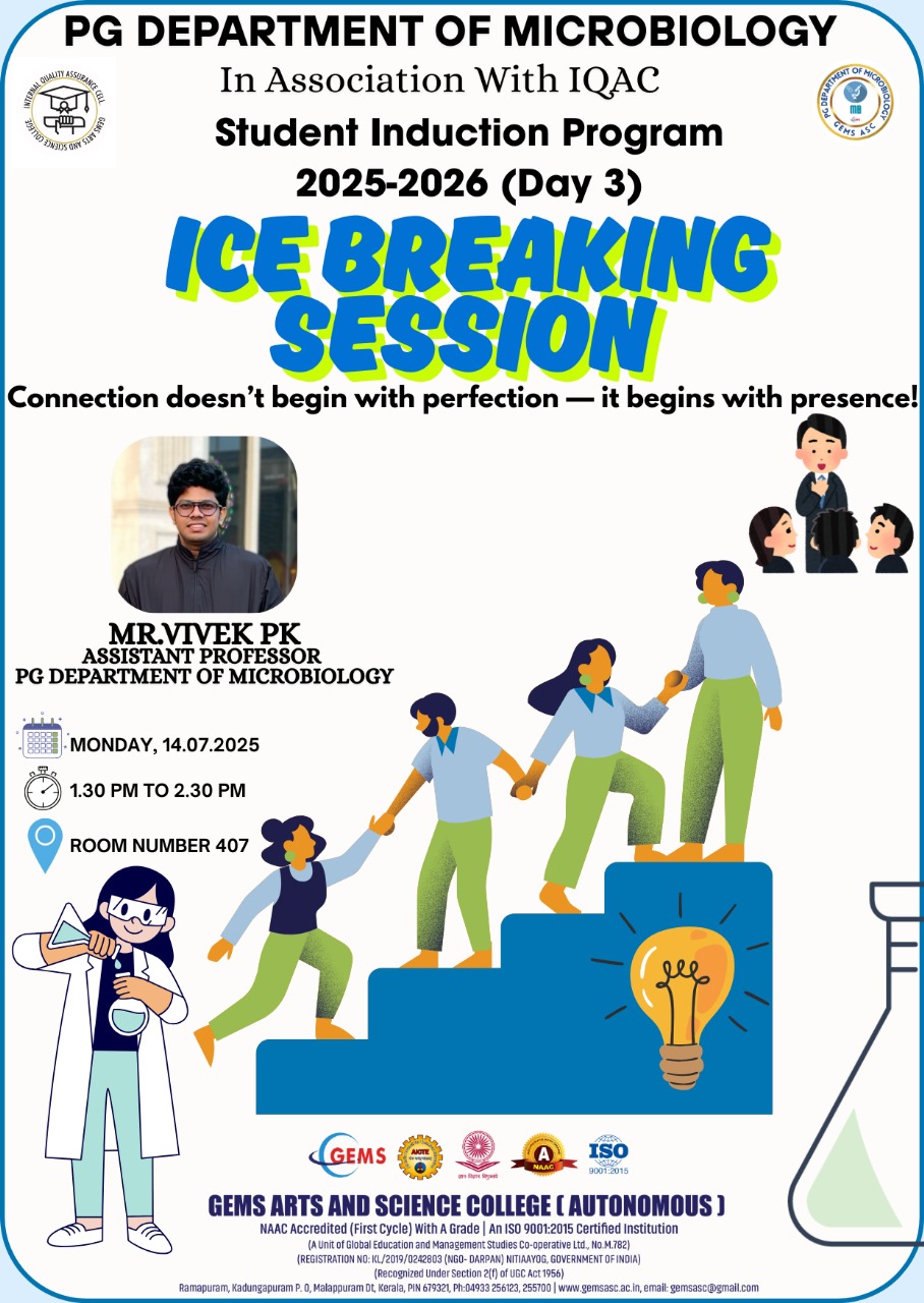 The PG Department of General Microbiology conducted a week-long orientation program from 11th to 18th July 2025 to welcome newly admitted undergraduate students and acquaint them with the department’s academic culture and learning environment. The session series began with an Institutional and Departmental Introduction by Ms. Resna N. K., Head of the Department, who outlined the department’s vision and academic opportunities. An engaging Icebreaking Session by Mr. Vivek P. K. helped students interact and build rapport. A Bridging Session led by Ms. Shana Parveen T. T. guided students in transitioning to the new curriculum. Students also participated in a Library Visit, coordinated by Mr. Vivek P. K., familiarizing them with academic resources. A creative Literary Activity by Ms. Shameema M. encouraged self-expression. The program concluded with an Invited Lecture by Ms. Sulthana Afroza P. P., providing interdisciplinary insights and inspiration for academic excellence.