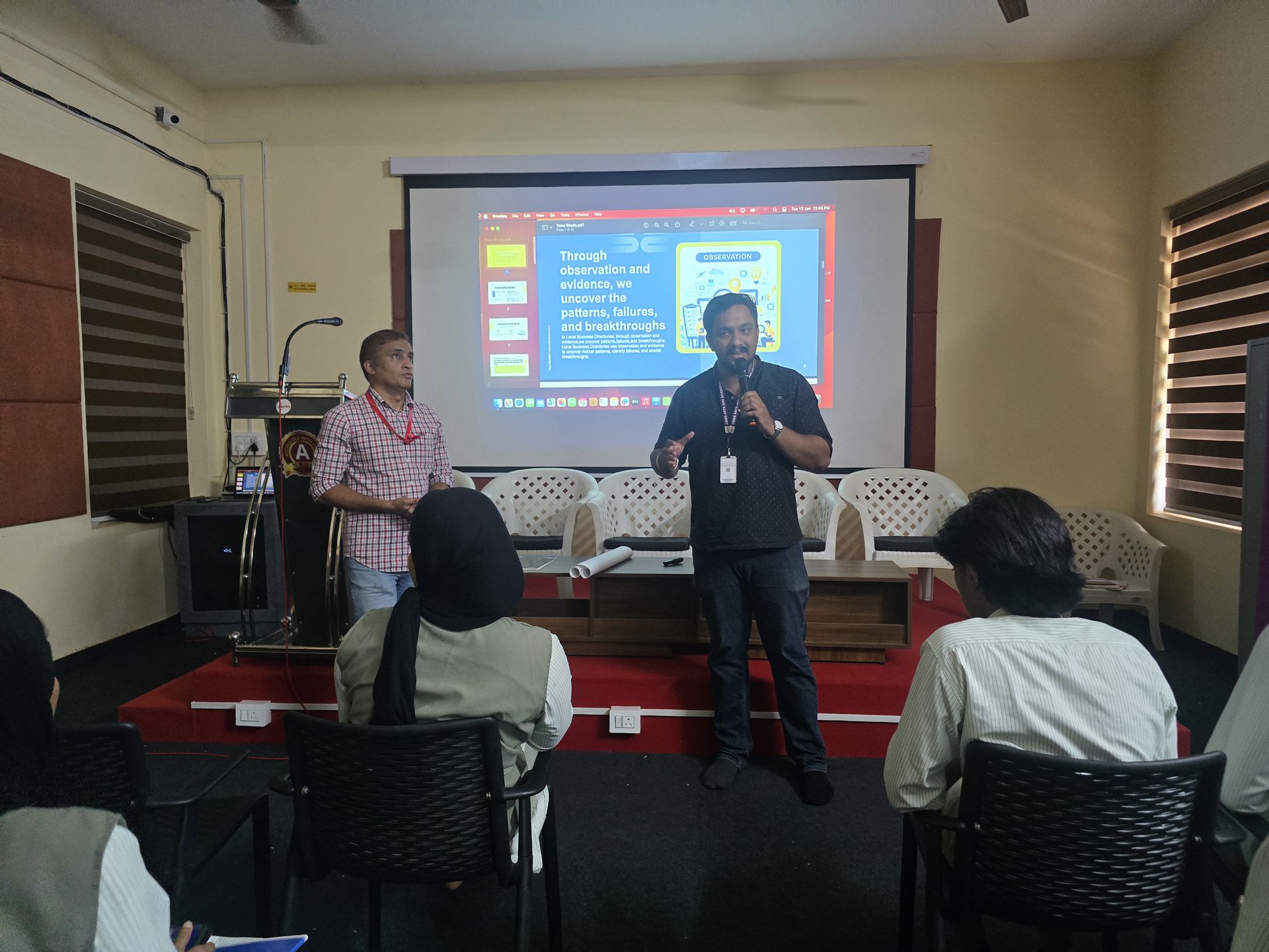 The session was mentored by Mr. Muhammad Suneesh, Founder & Creative Director, who served as the resource person for the program. He delivered an engaging and practical session focusing on real-world design practices and career development in the creative industry. The session covered topics such as approaching design work professionally, finding and handling clients, pricing and quoting design projects, understanding industry workflows, and building confidence in client interactions.