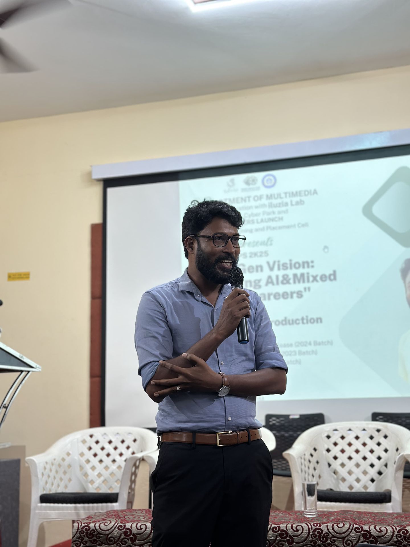This program was held as part of the MoU functioning for the academic year 2025–2026 between the Department of Multimedia, GEMS ASC, and Iluzia Lab, Calicut Cyber Park. A total of 89 students from the Department of Multimedia actively participated in the event.