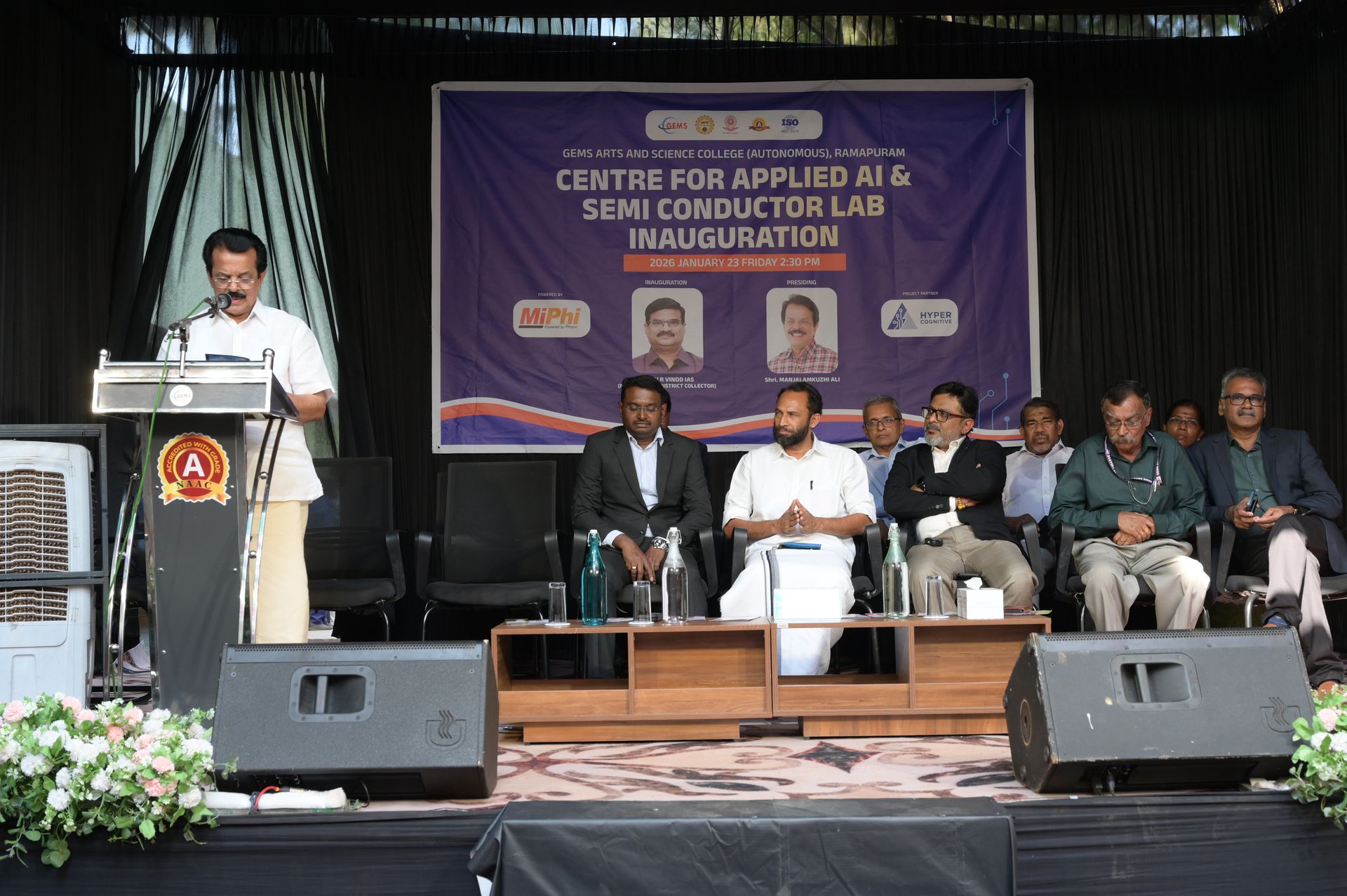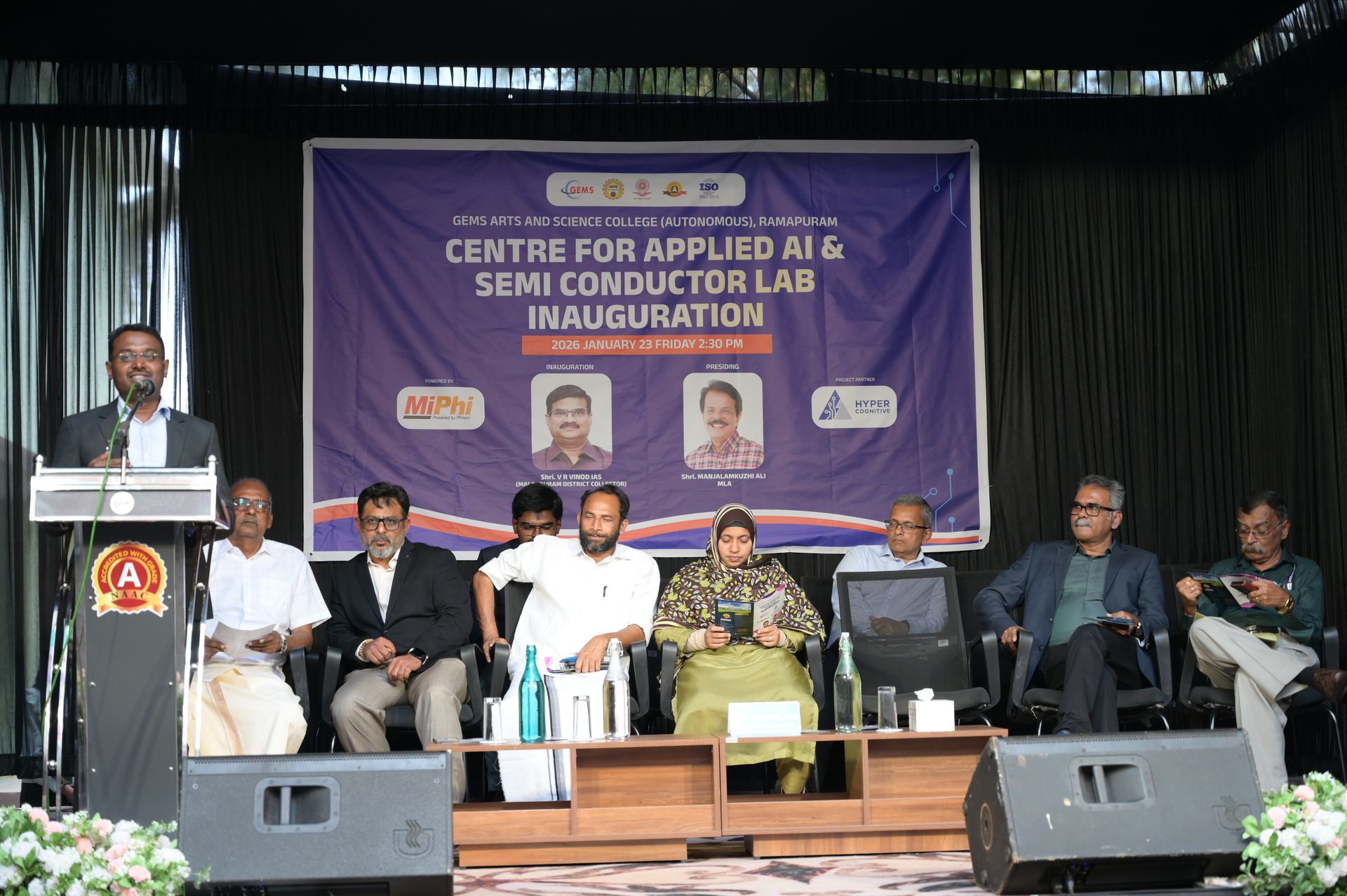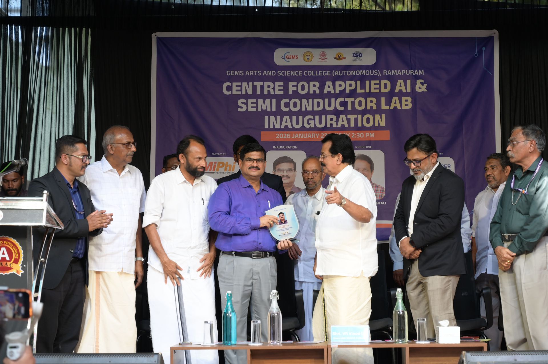 GEMS Arts and Science College (Autonomous), Ramapuram, is hosting the inauguration of the Centre for Applied AI & Semi Conductor Lab on Friday, January 23, 2026, at 2:30 PM. The event will be inaugurated by Shri. V R Vinod IAS, the Malappuram District Collector, and presided over by Shri. Manjalamkuzhi Ali MLA. This initiative is powered by MiPhi (Powered by Phison) in collaboration with project partner Hyper Cognitive.
