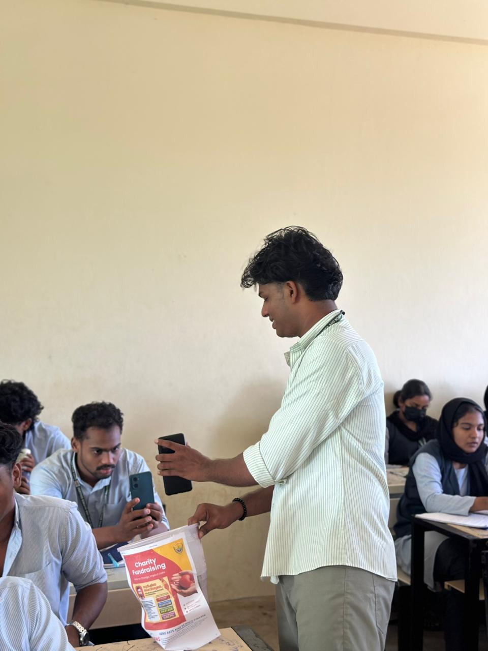 Following the guidance, the club members were divided into groups, each assigned to different areas of the college to ensure that the fund collection covered the entire campus. The teams approached students, faculty members, and non-teaching staff, explaining the medical condition of Mr. Suneesh and the urgency of financial support required for his kidney transplant. The sincerity and commitment of the students encouraged many to contribute wholeheartedly to the cause.