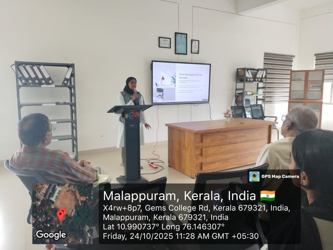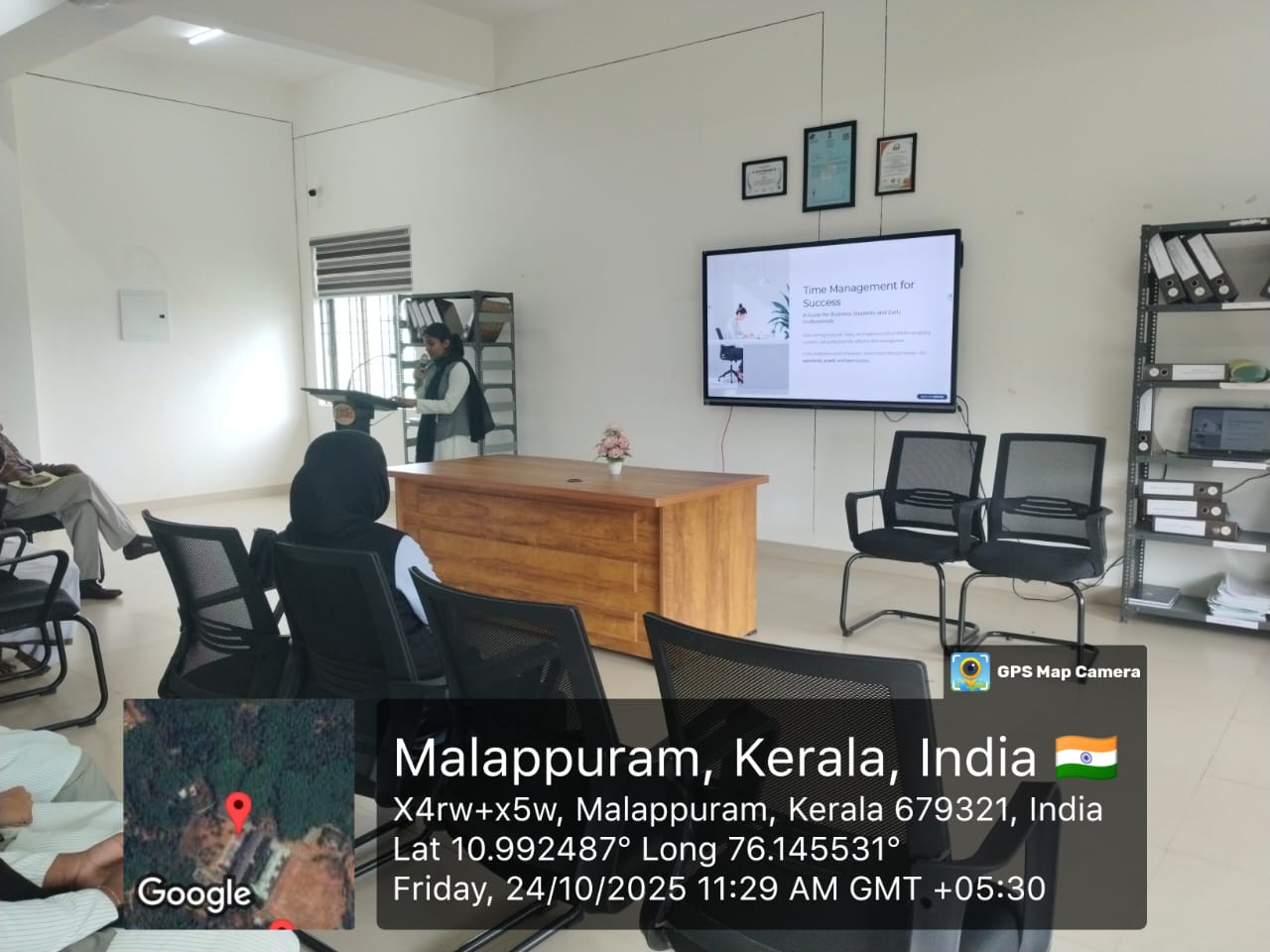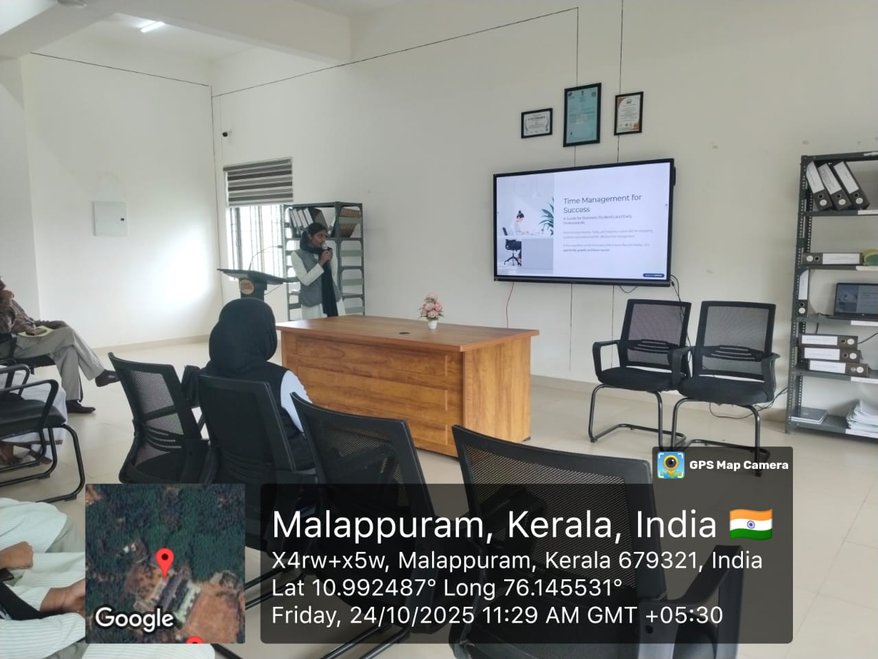The second presentation was given by Ms. Fathimma Fidha, S3 BBA, from the Department of Management Studies. Her topic, “Time Management for Business Students,” highlighted effective strategies for managing academic and professional responsibilities.