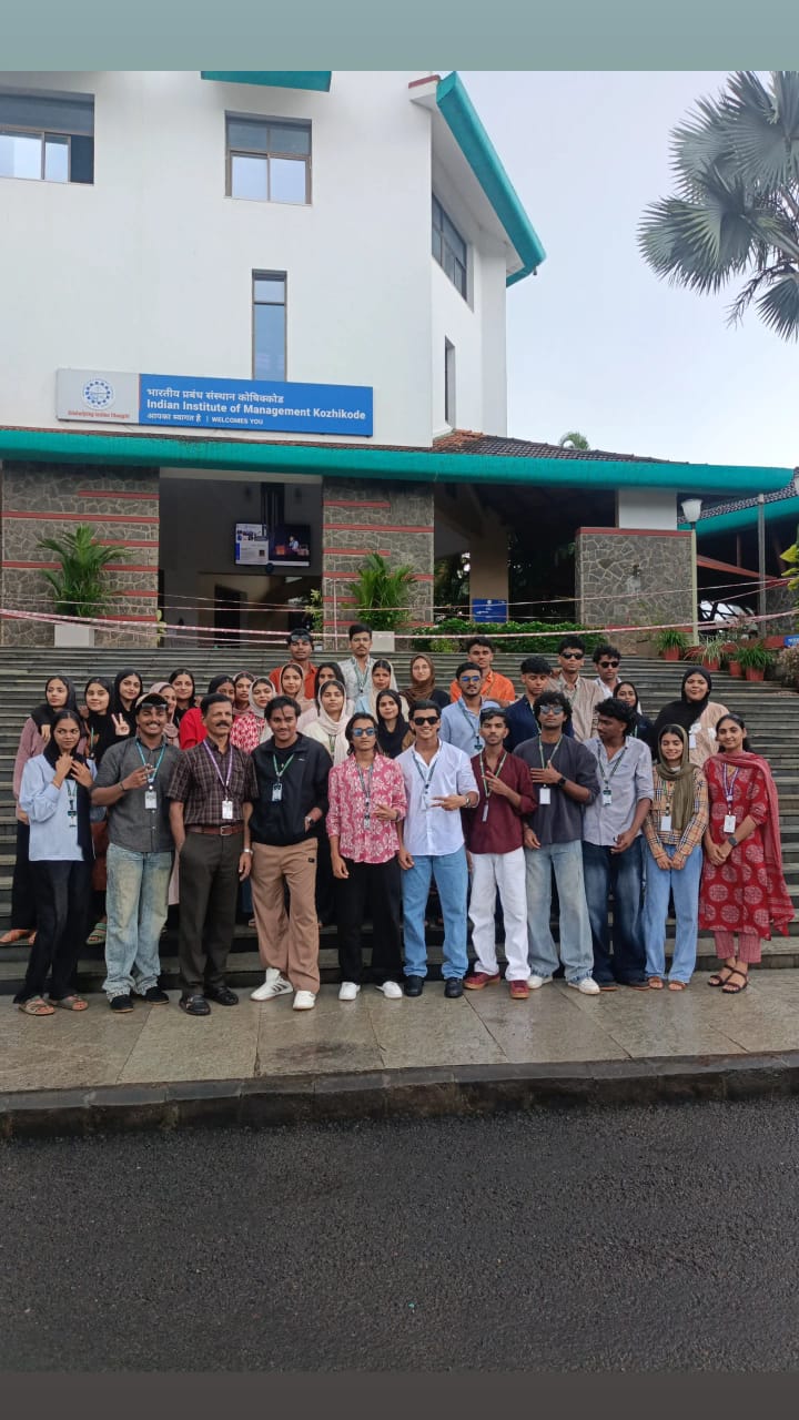 The Training and Placement Cell, in association with the Department of Management Studies, organized an educational visit to the Indian Institute of Management (IIM) Kozhikode for the S3 BBA students on October 28, 2025. The primary objective of this visit was to provide students with an opportunity to explore and experience the Business Expo organized by IIM Kozhikode and to gain practical insights into the world of management, innovation, and entrepreneurship.A total of 47 students, accompanied by two faculty members, participated in this academic visit. The event offered the students a unique platform to interact with budding entrepreneurs, industry professionals, and management scholars. During the visit, students had an opportunity to explore the IIM Kozhikode Business Museum, which highlights India’s rich business history and the evolution of management education in the country. The exposure helped the students connect classroom concepts with practical applications, enhancing their understanding of business operations and leadership principles.The visit proved to be an enriching experience, providing students with valuable learning beyond textbooks and lectures. It also strengthened their aspiration to pursue higher studies in reputed management institutions.Overall, the visit to IIM Kozhikode was highly informative and inspirational, aligning perfectly with the objectives of the Training and Placement Cell to promote experiential learning and career-oriented exposure for students.