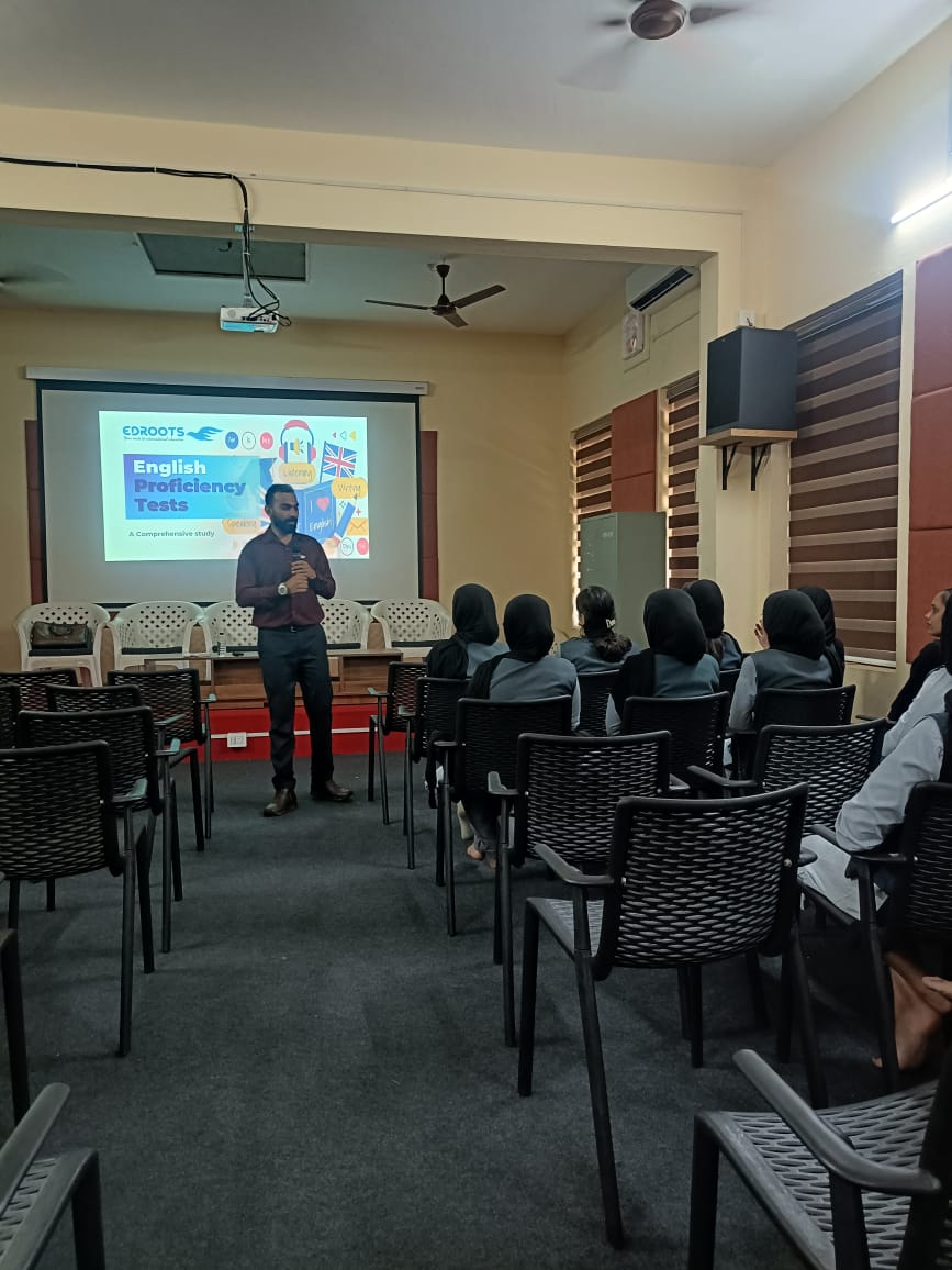 A workshop on Job Interview Tips was conducted for the final-year students of all departments at M. P. Narayan Menon Hall. The programme was organized by the Training & Placement Cell in association with Edroots International, Workshop on Global Education and Career Opportunities and English Proficiency Tests on Wednesday, 14th January 2026, at 10:30 AM. The session was led by Mr. Salih V, Academic Advisor. The workshop aimed to create awareness among students about international study options, top universities, post-study work opportunities, and the importance of English proficiency tests such as IELTS. The speaker explained band scores, test structure, and preparation strategies, motivating students to plan their global academic and career pathways. The session was interactive and informative, and students actively participated in discussions and queries, making the program highly beneficial.