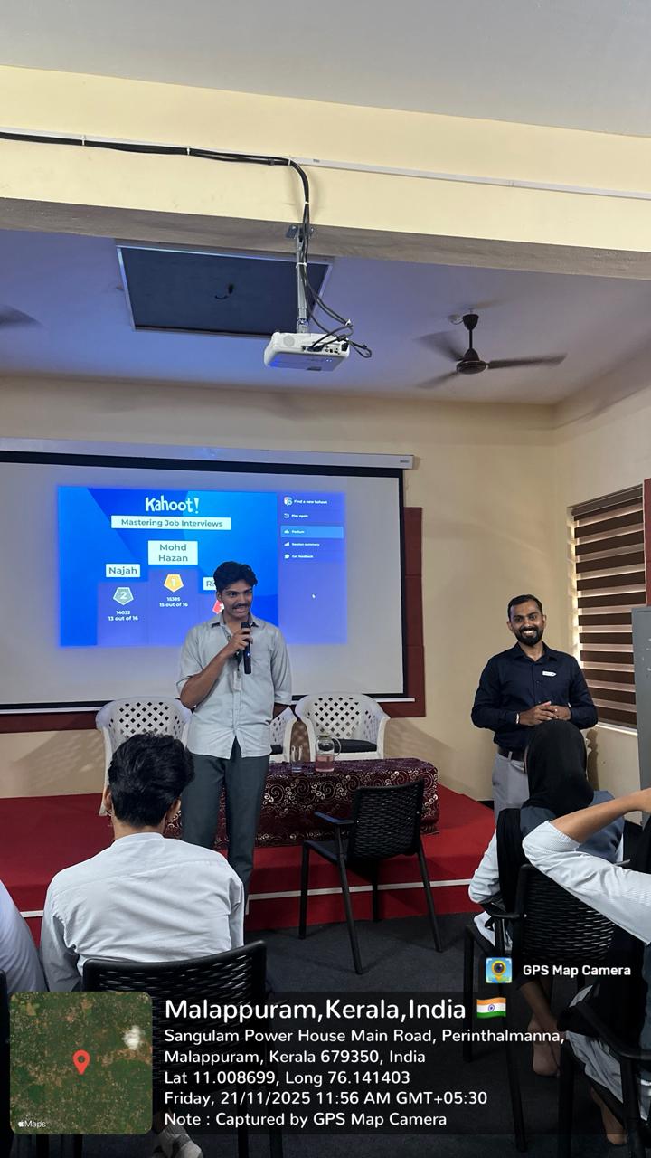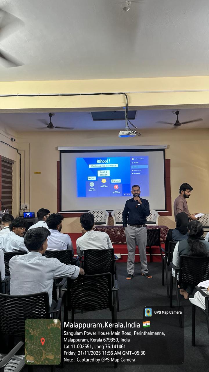 The session was handled by Mr. Salih V, Academic Advisor, who led the workshop effectively by sharing valuable insights, real interview scenarios, and practical strategies. His interactive style and clear explanations made the session highly beneficial for students.