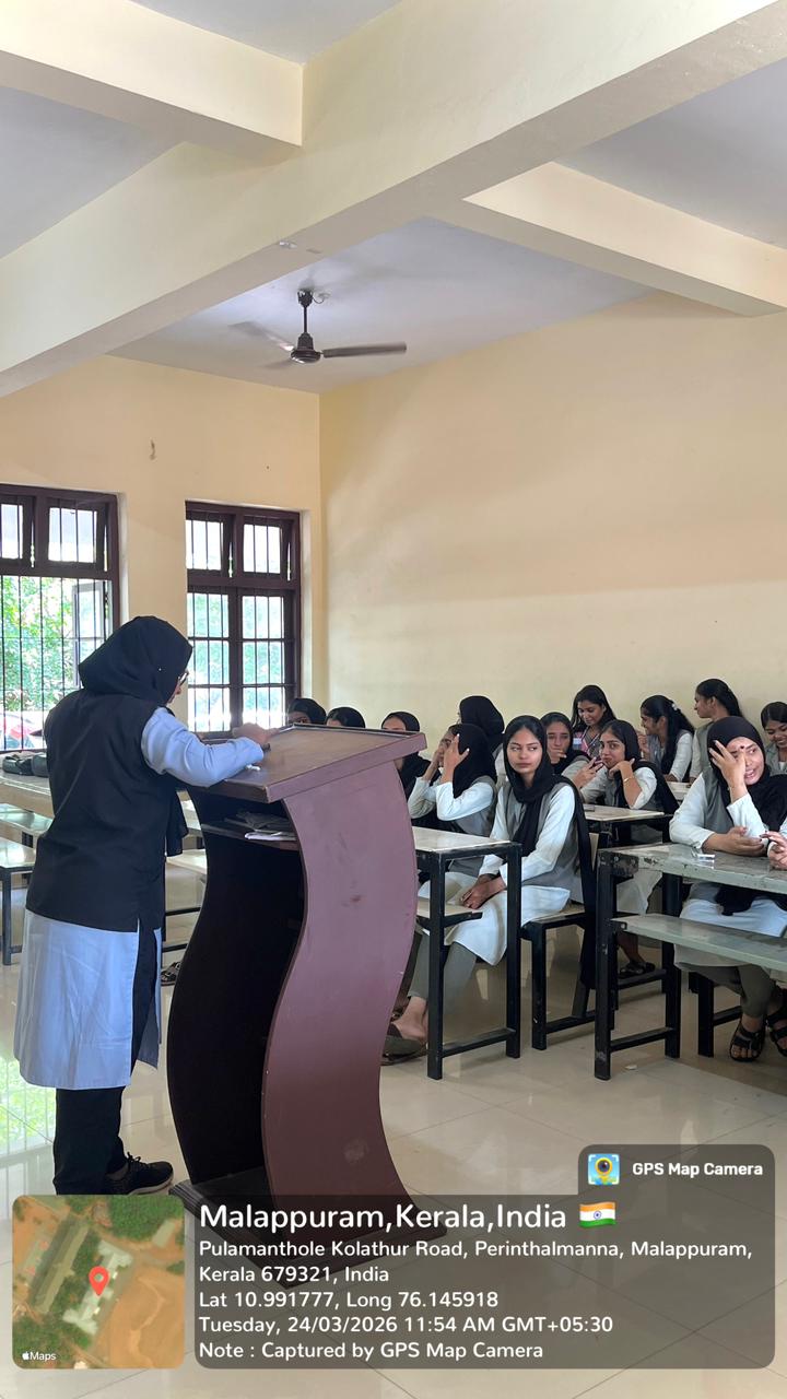 The resource person for the session was Ms. Asfina Fabi K.T, an MSW student. She delivered an insightful talk on the film “Feminichi Fathima”, explaining its themes, characters, and the social messages conveyed through the storyline. The speaker elaborated on issues related to gender inequality, societal norms, and the lived experiences of women portrayed in the film. The session encouraged students to reflect on contemporary gender issues and engage in meaningful discussions.
