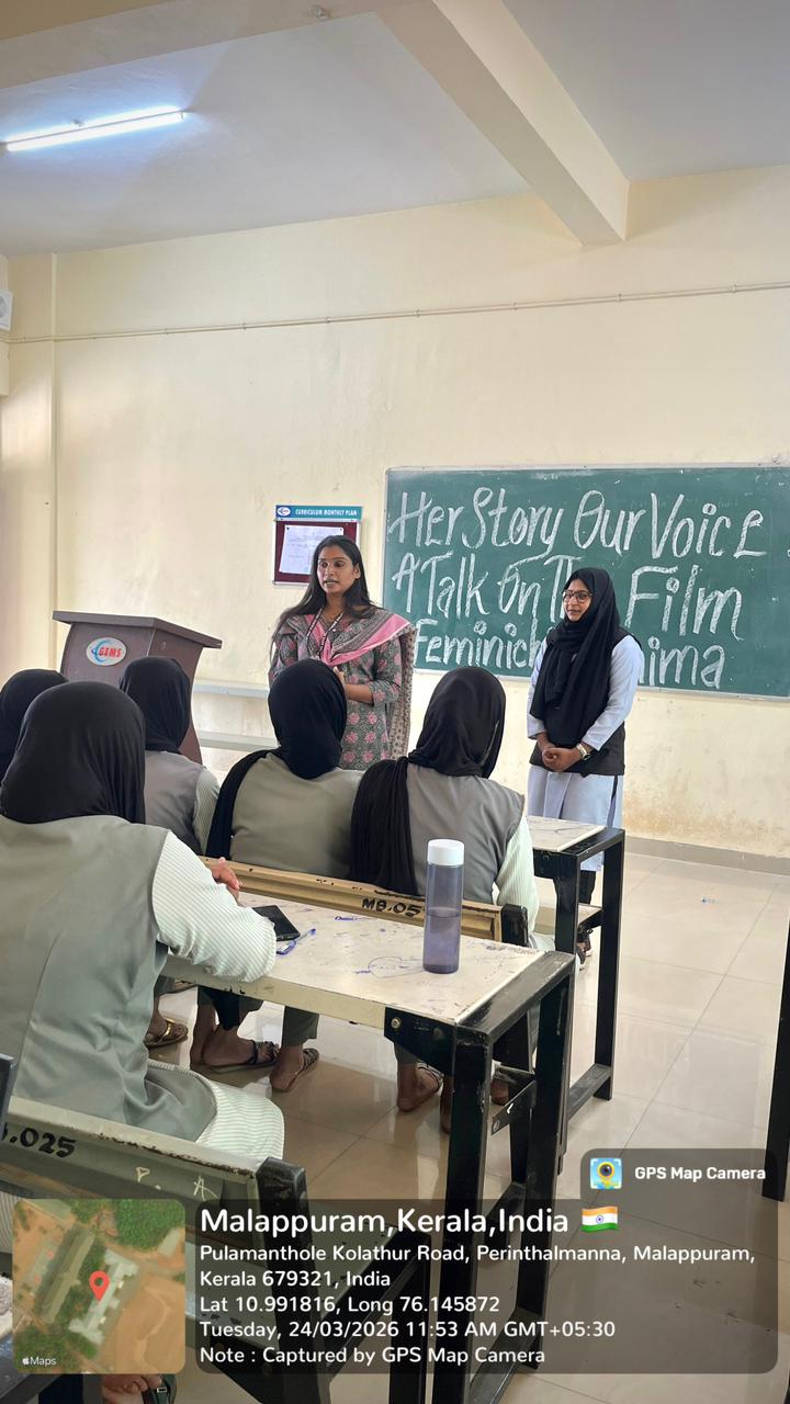 The Department of Sociology organized a programme titled “Her Story, Our Voice” on 24th March 2026 (Tuesday) from 9:30 AM to 10:30 AM at Room No. 703. The programme was conducted as a talk session based on the film “Feminichi Fathima”, aiming to create awareness and discussion on gender perspectives and feminist narratives.