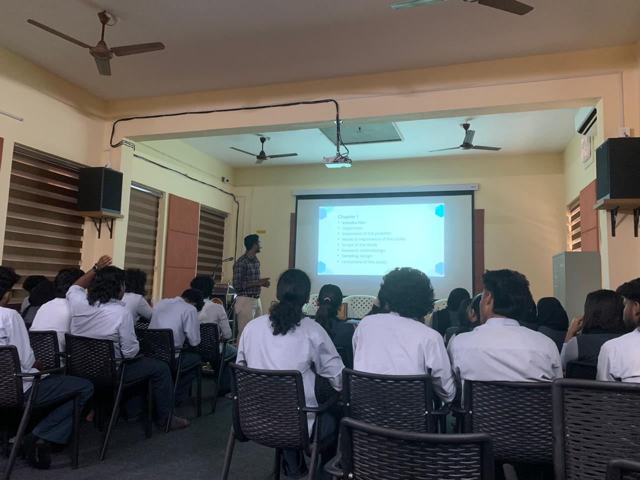 The Department of Travel and Tourism Management, GEMS Arts and Science College (Autonomous), organized a research-oriented academic programme titled “Inquest: A Journey into the Logic of Research” on 21 December 2025. The programme was designed to provide students with a clear understanding of the fundamentals of research, its logical framework, and its relevance in academic and professional fields. The session was held at MPN Hall and commenced at 10:00 a.m. The resource person, Mr. Muhammed Abdul Shameem TV, delivered an insightful and engaging talk on the concept of research, emphasizing the importance of logical thinking, problem identification, research design, and methodology. He explained various stages of research in a simple and practical manner, making it easy for students to grasp complex ideas. The speaker also highlighted the relevance of research in tourism studies, particularly in understanding industry trends, consumer behaviour, and sustainable development. Real-life examples and experiences were shared to motivate students to develop research aptitude and critical thinking skills. The programme witnessed active participation from students of the Department of Travel and Tourism Management. An interactive session followed the lecture, during which students raised questions related to project work, data collection methods, and career opportunities in research. The resource person addressed all queries patiently and provided valuable guidance. The programme successfully enhanced students’ understanding of the logic and importance of research. It encouraged students to approach academic projects systematically and analytically. The session also motivated students to pursue research-oriented thinking in their future academic and professional endeavours. The Department expresses its sincere gratitude to the resource person for sharing his expertise and to all participants for making the programme a success.